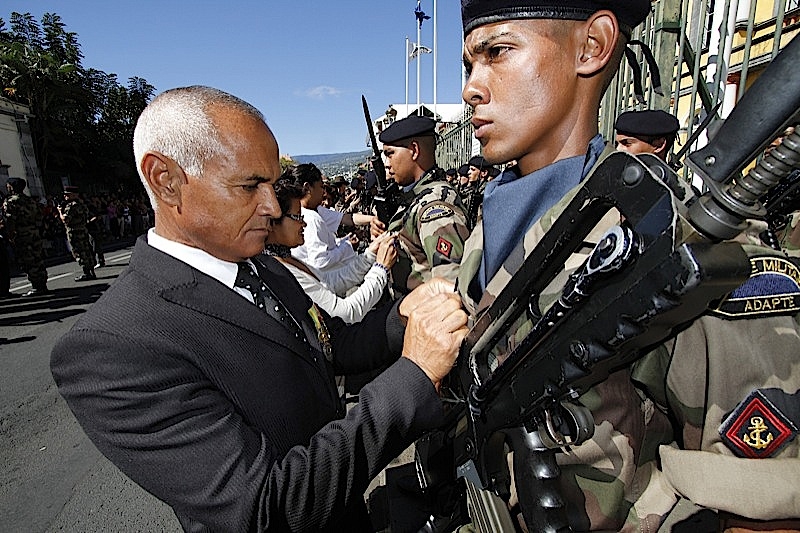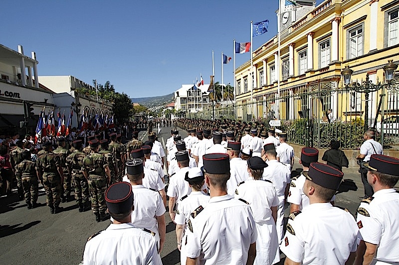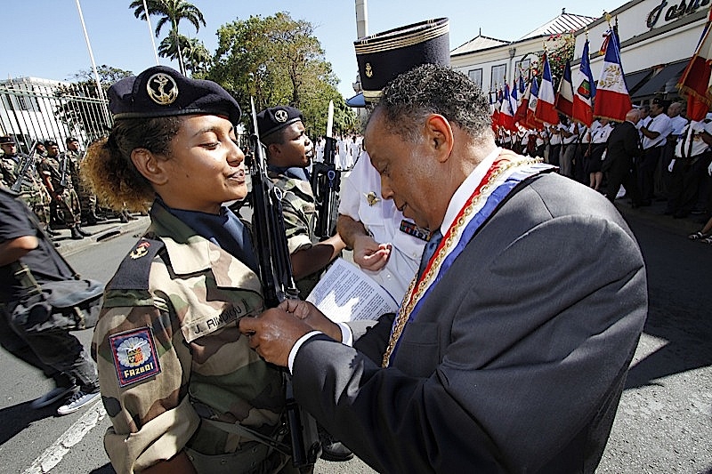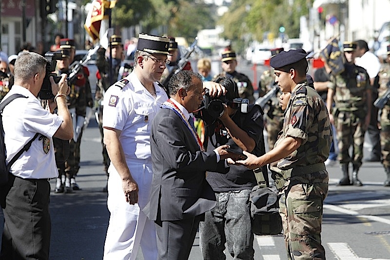 90 jeunes volontaires du contingent du mois d'août ont été présentés à l'étendard du RSMA (Régiment du service militaire adapté) ce mercredi 25 août 2010 devant la mairie de Saint-Denis. À l'occasion, trois jeunes Marsouins, le 1er classe Turpin, le soldat Kbidi et le soldat Narsicadou, se sont vus remettre la médaille de bronze de la Défense Nationale. Le soldat Deurveillers a reçu le CAPI (certificat d'aptitude professionnelle à l'insertion). La cérémonie s'est déroulée en la présence du Lieutenant-colonel Renard, commandant second du RSMA de La Réunion, du maire de Saint-Denis, Gilbert Annette, de la Compagnie d'instruction, commandée par le Capitaine Dollet, et des différentes amicales de la ville de Saint-Denis.