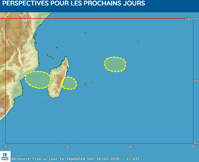 Pour les 5 prochains jours, le risque de formation d'une tempête tropicale modérée sur le Sud du Canal du Mozambique ainsi que le long de la cote Est malgache est faible jusqu'à dimanche et devient faible à modéré en début de semaine prochaine."