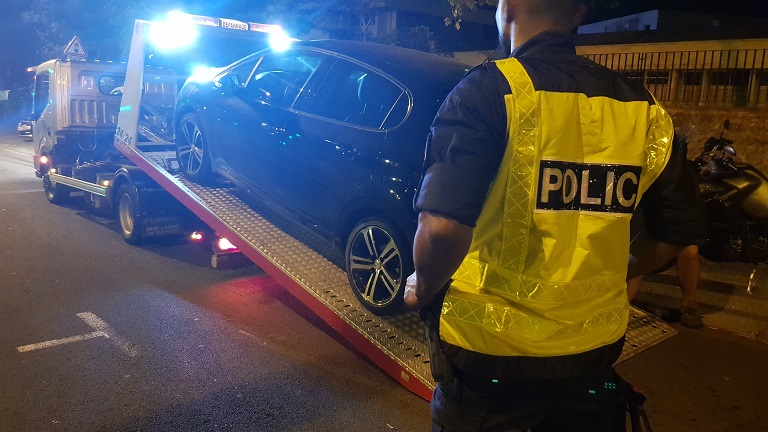 Un conducteur circulant à 120km/h au volant d'une Peugeot 208 GT neuve sur une voie limité à 50 km/h a été intercepté. Son véhicule a été immobilisé pour être placé à ses frais en fourrière pendant au minimum 7 jours. L'auteur, administrativement dépossédé de son permis, sera convoqué au Commissariat de Police puis devant le Tribunal de Police, cette juridiction pouvant décider de la confiscation du véhicule.