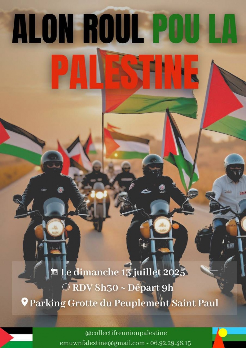Ce dimanche 13 juillet 2025, le Collectif Réunion Palestine organise un convoi depuis la grotte du peuplement à Saint-Paul, en direction de Saint-Pierre. Rendez-vous est donné dès 8h30 pour une arrivée vers 11 heures au jardin de la plage. Des prises de parole et des stands solidaires seront installés sur place (Photo d'illustration : rb/www.imazpress.com)