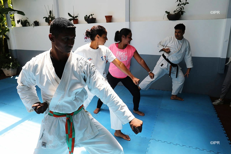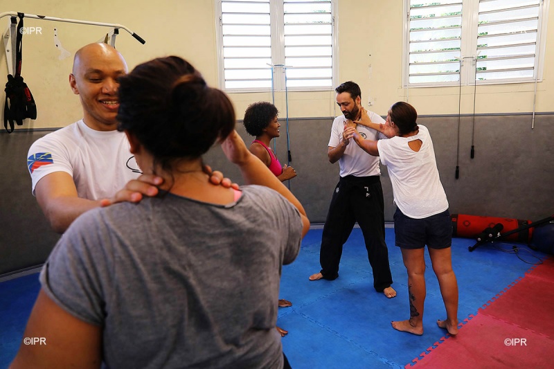 Pour la journée internationale des Droits des felles, la Direction Départementale de la Sécurité publique organisait ce vendredi 8 mars 2019 au commissariat Malartic, une journée de cohésion et de partage pour l'ensemble de son personnel féminin. Au programme, des activités de détente et sportive, comme le yoga, le karaté, ou encore le Krav Maga, cette méthode de self-défense israélienne. Imaz Press a assisté à l'un de ces ateliers... (Photo : rb/www.ipreunion.com)