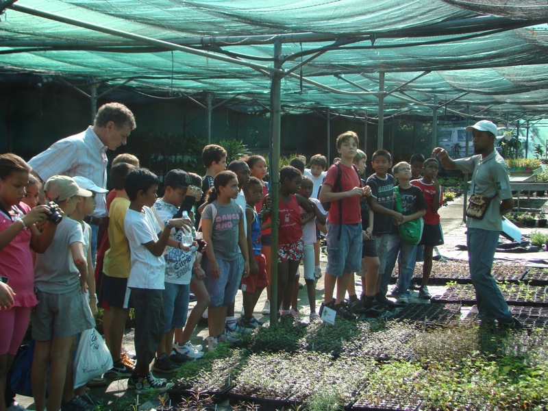 En accompagnement du projet de restauration de la forêt semi-sèche à la Grande Chaloupe, le parc national finance un projet pédagogique pilote à destination des élèves de l'école Evariste de Parny à la Possession. Des élèves de CM2 sont donc allés visiter la pépinière du Théâtre à Saint-Gilles, mardi 26 avril 2011, pour comprendre comment se développe une plante. Dans le cadre de ce projet " un enfant, un arbre endémique réintroduit ", ils ont découvert les arbres qui constituent cette végétation unique au monde et ont appris à décortiquer les graines et les faire germer.