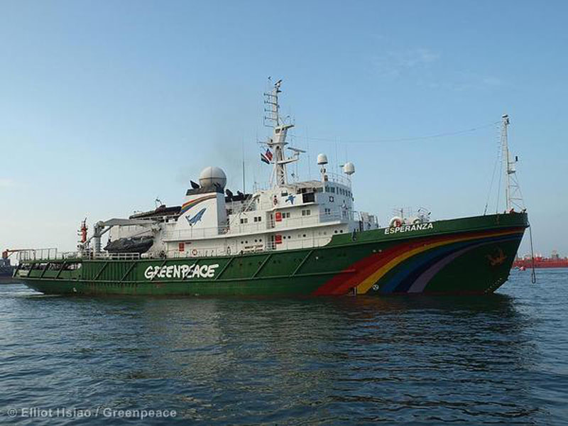 L'Esperanza, un des bateaux de la flotte de Greenpeace fera escale, pour la première fois à La Réunion le mercredi 8 et jeudi 9 mai 2013 de sa mission dans l'Océan Indien. Le navire ouvrira alors son ponton et ses portes au public au Port-Ouest. À noter que les équipes de Greenpeace mènent depuis deux mois une enquête en haute mer sur les pratiques des thoniers. Pour l'organisation non gouvernementale (ONG), l'état des stocks de thon est, en effet, préoccupant. Elle souligne que "les scientifiques de la commission thonière de l'Océan Indien recommandent notamment de réduire de 20% au moins les prises de thon blanc pour permettre au stock de se maintenir". (Photo Greenpeace)