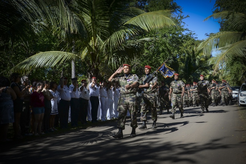 "Vendredi matin, la cérémonie de passation de commandement entre le capitaine Eric, quittant le commandement, et le capitaine Cyrille, son adjoint prenant le commandement, s'est déroulée au golf de l'Étang-Salé devant les autorités civiles et militaires.