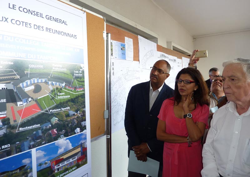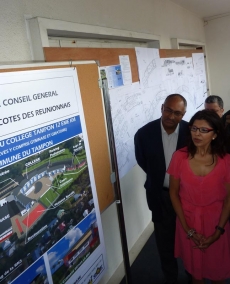 Vingt mois de travaux sont prévus pour construire ce collège de 900 places. "Ce n'est pas un événement banal", a assuré Nassimah Dindar pour qui veut ainsi offrir de meilleures chances de réussite aux élèves réunionnais. L'objectif du Département avec ce nouveau projet est de désengorger les cinq collèges qui existent déjà dans cette commune du Sud.Les établissements en service dans les quartiers de Terrain Fleury, de Trois Mares, La Chatoire, du 14e et de la Plaine des Cafres accueillent déjà "plus de 5 000 collégiens" a également rappelé la conseillère générale Nathalie Bassire qui représentait le maire du Tampon Paulet Payet. La commune a mis à disposition le foncier d'une valeur de 1,3 million d'euros et le coût de l'opération avoisine les 20 millions d'euros pour le Département.