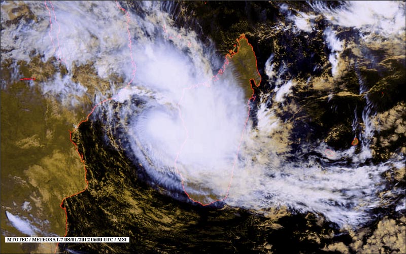 Un système dépressionnaire s'est formé depuis le vendredi 6 janvier 2012 dans le canal du Mozambique à l'ouest de Madagascar. Il se dirige vers l'est-sud-est à la vitesse de 17 km/h. À 10 heures ce dimanche 8 janvier, le phénomène se trouvait à 1 330 km à l'ouest de côtes de La Réunion.