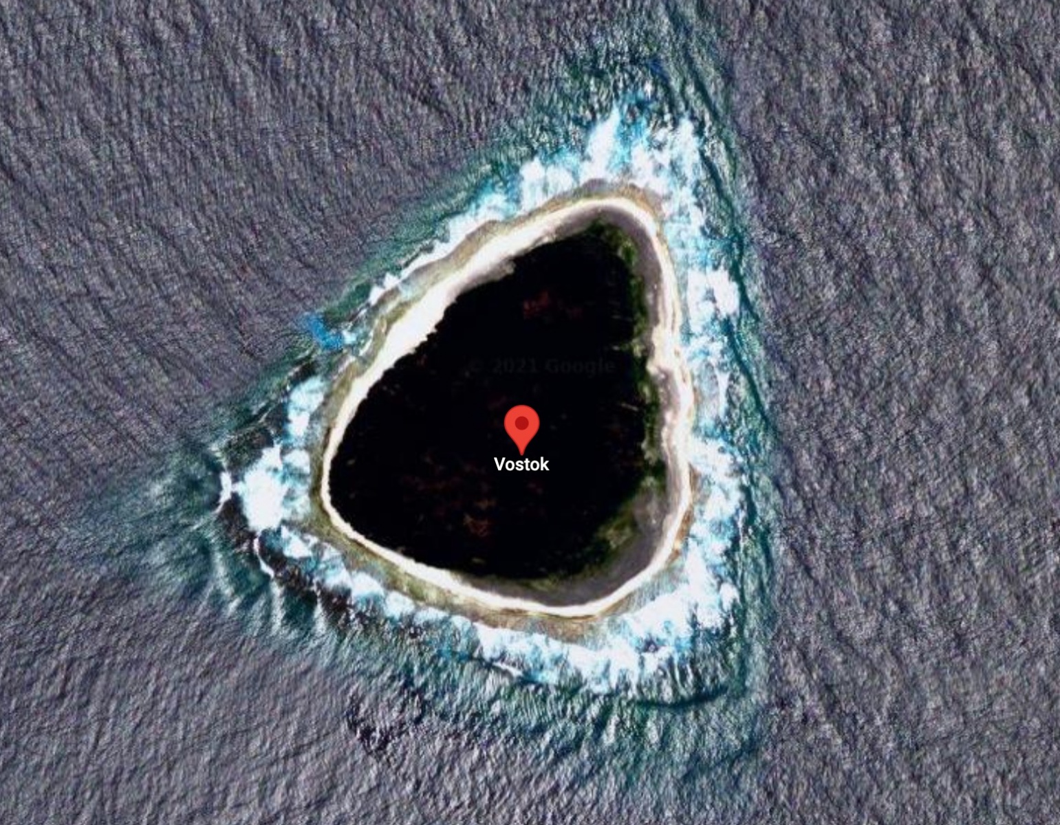 Depuis plusieurs jours, les internautes s'étonnent de voir un "trou noir" au milieu de l'océan Pacifique, aperçu sur les prises de vue satellitaires de Google Maps. Il s'agit en fait d'un effet d'optique : à la place du trou se trouve en fait une île, du nom de Vostok. D'une superficie de 24 hectares, elle est inhabitée et fait partie de la République de Kiribati. Fin du suspense ! (Photo : Reddit / kokoblocks)