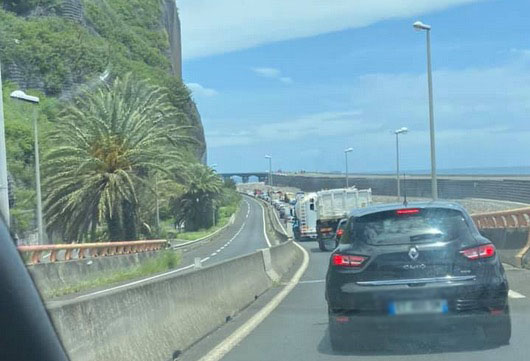 Ce jeudi 11 février 2021, un véhicule a perdu son chargement de baies vitrées sur la Route du littoral, créant un embouteillage en direction de l'ouest. L'incident est terminé, mais des débris de verre sont toujours présents sur la route. A 14h45, l'embouteillage s'était résorbé. (Photo radar974/Timothé Mcl)