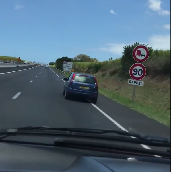 Après la vidéo de la conduite dangereuse à Sainte-Suzanne, voici celle tournée sur la route des Tamarins pic.twitter.com/vwc6JbvlAg