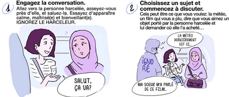 Une jeune illustratrice parisienne a publié sur les réseaux sociaux un guide en bande dessinée, destiné aux témoins de harcèlement envers les personnes musulmanes. Pour tenter d'éradiquer les attaques islamophobes, la jeune femme donne quatre conseils simples, adaptables à d'autres formes de harcèlement.