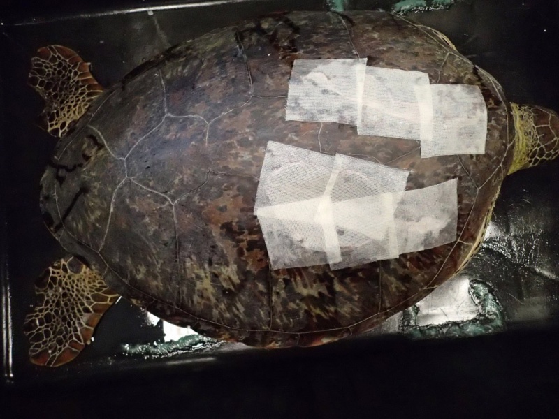 Ce dimanche 23 août 2015, une jeune tortue a été recueillie par le centre de soins de Kelonia en début d'après-midi. Elle souffrait de deux lésions importantes au niveau de la carapace. Malgré les premiers soins prodigués par l'équipe, l'animal a succombé à ses blessures ce lundi 24 août.