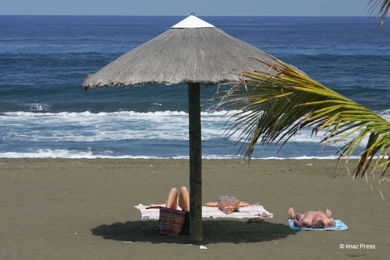 Matante Rosina met ses lunettes de soleil et son bob pour aller faire une petite marche matinale, histoire de garder la forme ce vendredi 7 juillet 2023. Le soleil est bien présent même si elle voit quelques nuages du côté du sud-est de l'île. Globalement, le beau temps est partout. Le vent souffle bien aujourd'hui et devrait atteindre les 60 km/h en rafales. (photo rb/www.imazpress.com)