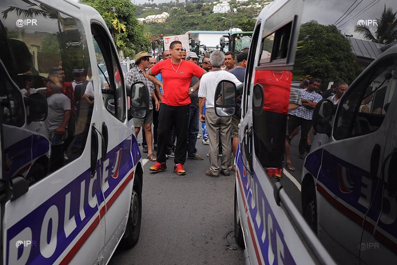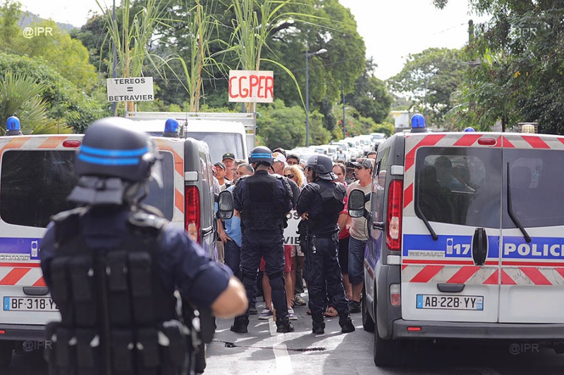 • 17h10 - Un important dispositif de police se dirige aussi vers le rond-point de la route du littoral et fait face aux planteurs