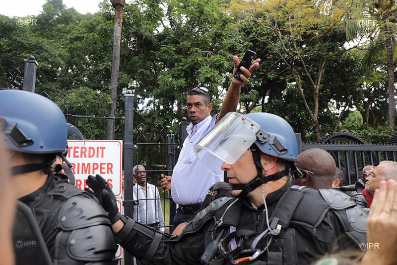• 13h23 - Les forces de l'ordre réglemente l'accès au Barachois devant la préfecture pour empécher tout nouveau blocage
