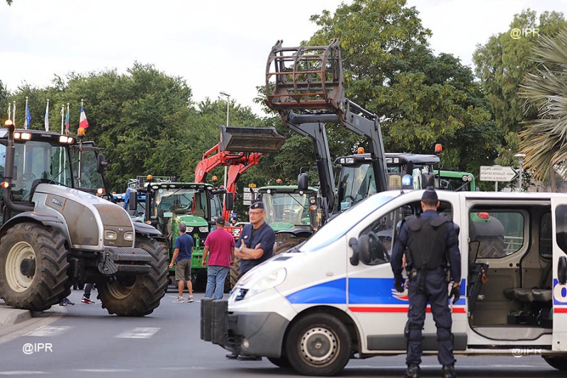 • 18h10 - Quelques tracteurs commencent à quitter le secteur la préfecture et prennent la direction de l'est. Les barages filtrants sont toujours en place.