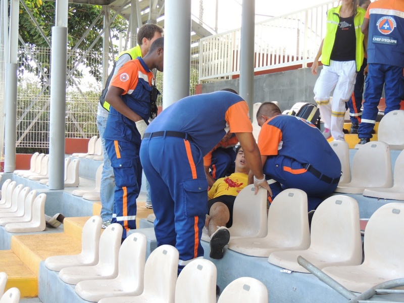 Une des tribunes du stade de La Redoute s'est effondrée ce samedi 18 janvier 2014. Le drame, qui a eu lieu à 8 heures, a causé une vingtaine de blessés. Certains ont été victimes d'un traumatisme crânien, d'autres présentent des fractures ouvertes. Heureusement, cette catastrophe n'est qu'une simulation de la protection civile de La Réunion. Un exercice grandeur nature qui permet aux secouristes, logisticiens, urgentistes et infirmiers de se préparer au mieux à ce genre d'événements. C'est la première fois qu'une action de telle ampleur est organisée à La Réunion. Appelée plan NOVI, pour nombreuses victimes, la protection civile s'est félicitée de la bonne réactivité de ses équipiers. (photo D.R.)