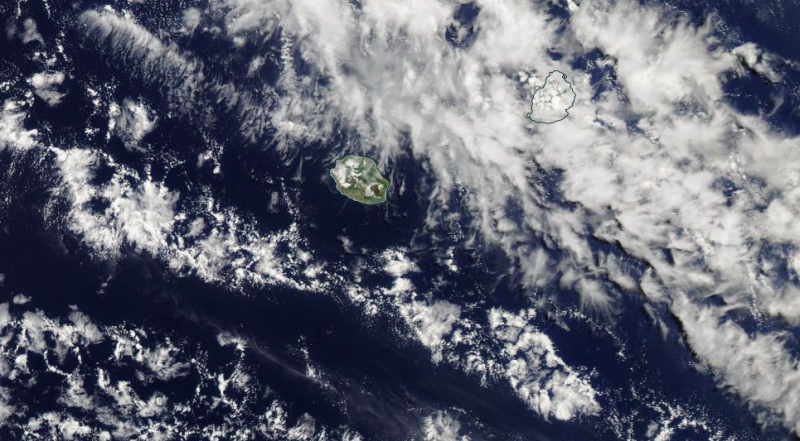 Cette image a été capturée par le satellite Aqua ce mercredi 24 octobre aux alentours de 14h30. Une image de La Réunion prise depuis l'espace à presque 900 km à l'Ouest-Sud-Ouest de notre île. Le satellite américain Aqua est en orbite autour de la Terre depuis 2002. La mission primaire d'Aqua d'une durée de 6 ans a été prolongée et le satellite est toujours opérationnel en 2018. Sa principale mission est de collecter des données sur le cycle de l'eau. Ces données sont ensuite analysées par les scientifiques de la NASA. À terme, elles serviront à trouver des solutions pour lutter contre les changements climatiques. Les images de La Réunion capturées par des satellites de la NASA sont assez rares. Malgré le fait que les conditions météorologiques étaient fortement dégradées en début de semaine à cause d'un front froid : fortes pluies, orages, vent, houle, ce mercredi 24 octobre, la vue était parfaitement dégagée. Et c'est magnifique. Cette image n'a pas échappée à certains initiés...
