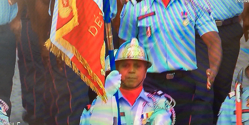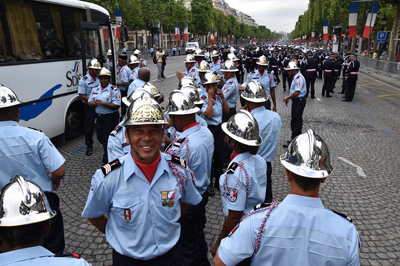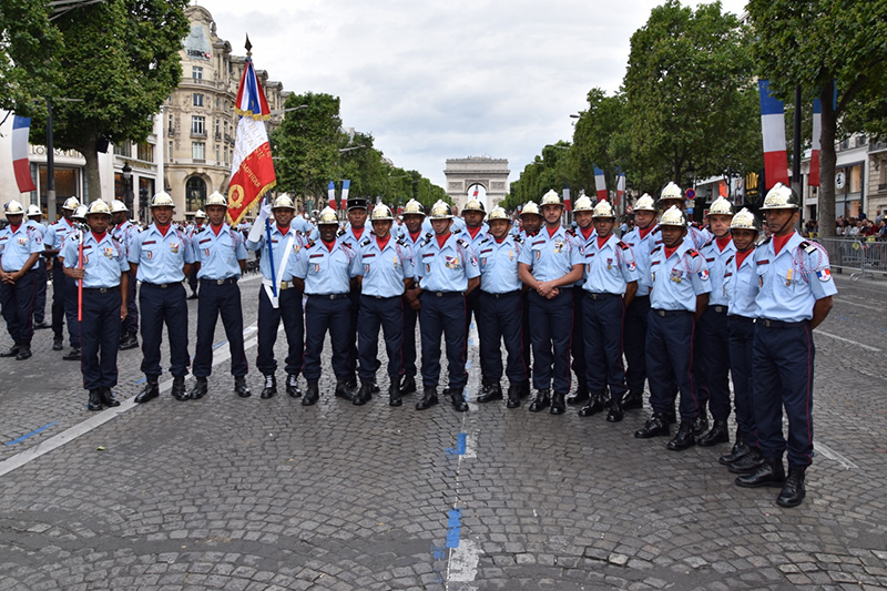 Accompagnés des délégations guyanaise, martiniquaise, mahoraises, et guadeloupéennes, 22 pompiers de La Réunion ont défilé sur les Champs Élysées à Paris pour la fête nationale ce jeudi 14 juillet 2016. Ils étaient placés sous le commandement du chef de bataillon, Bertrand Vidot et c'est le lieutenant Jean-Yves Chinjoie qui a été le porte-drapeau en tête du carré de cérémonie qui est passé devant a tribune présidentielle où se trouvaient François Hollande, de nombreux membres du gouvernements et invités érangers. Interviewé par Imaz Press le jeudi 30 jeudi dernier, le lieutenant Jean-Yves Chinjoie, disait ressentir une immense fierté, pour les ultra-marins mais aussi pour la France toute entière