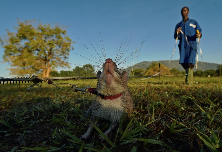 Le soleil se lève à peine au pied du massif de Morogoro, en Tanzanie, mais Jon Stewart et Stephen Hawking agitent déjà frénétiquement leur museau inquisiteur sur le sol humide d'un champ truffé de mines antipersonnel inactives. Ces rats géants, des jumeaux nés en juin 2015, participent à la dernière phase de leur entraînement avant d'être envoyés au Mozambique, en Angola ou au Cambodge, pays dans lesquels l'ONG belge Apopo, leur employeur, a déjà neutralisé plus de 83.000 mines antipersonnel après avoir remporté des appels d'offres pour le déminage de ces zones meurtries par la guerre.