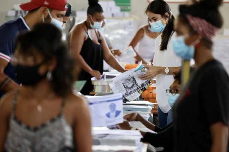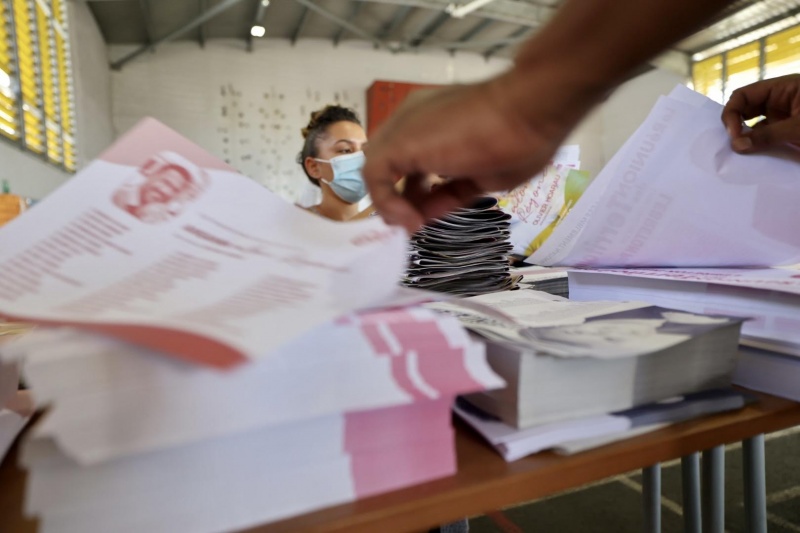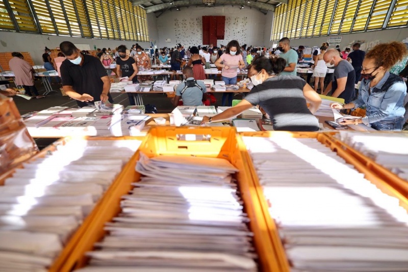 Les élections régionales auront lieu les dimanche 20 juin et 27 juin 2021. Dans le gymnase Reydellet à Saint-Denis les opérations de mise sous plis des listes, des professions de foi et des bulletins des candidat.e.s ont commencé. Comme pour chaque élection, des dizaines de milliers d'enveloppes contenant plus de six millions de documents seront distribués dans les boites aux lettres des Réunionnaise.s. Le préfet de La Réunion Jacques Billant s'est rendu sur place ce lundi 31 mai pour suivre les opérations qui auront lieu jusqu'au 4 juin. (Photo : rb/www.ipreunion.com)