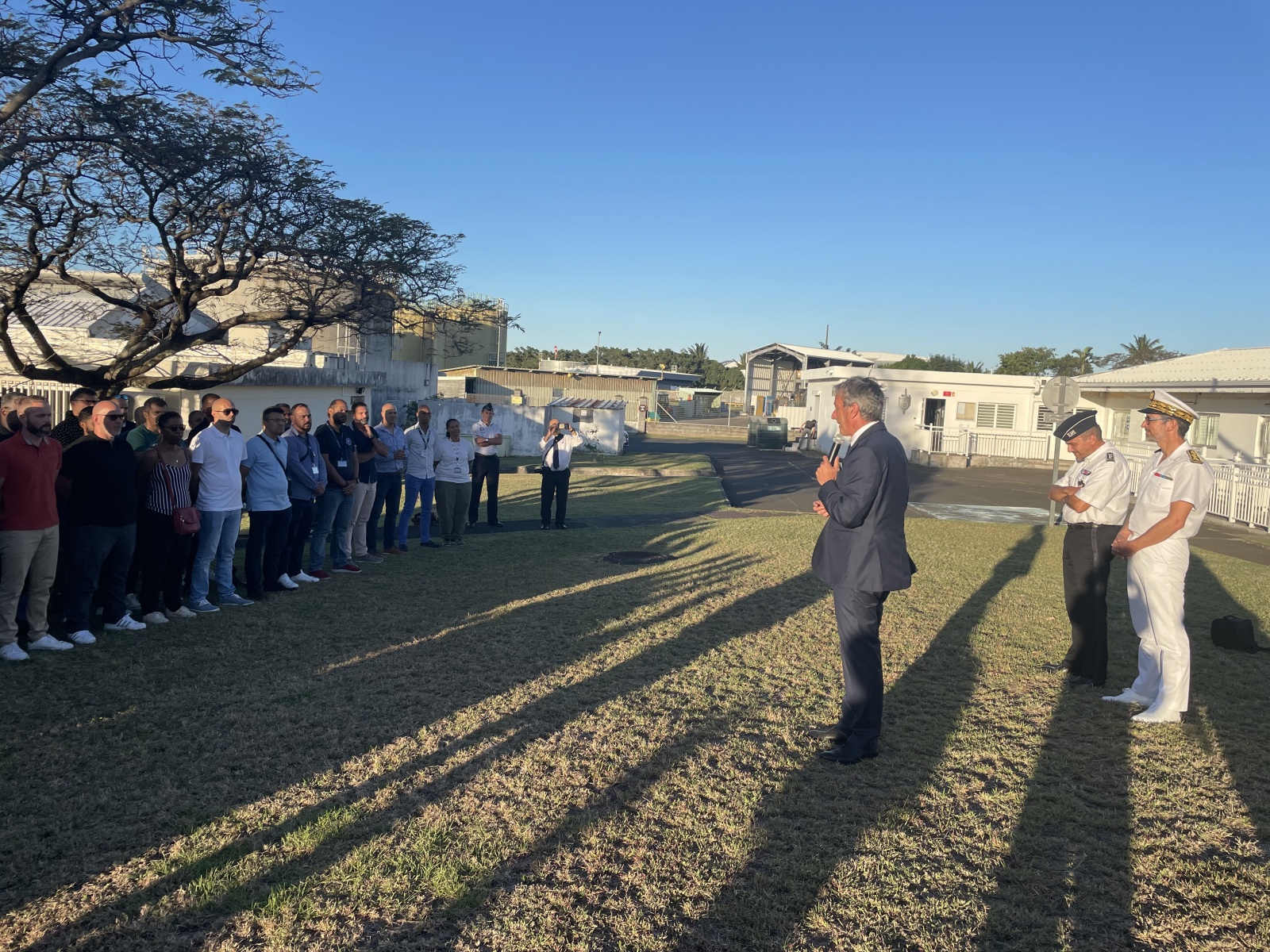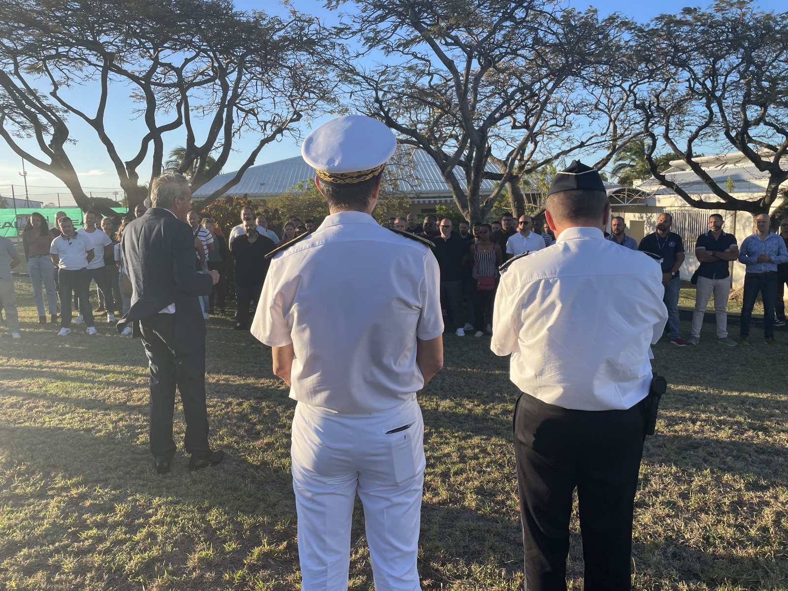 Après les avoir remercié de partager avec lui ce moment important à la base aérienne 181, il leur a transmis un message du ministre de l'Intérieur, Gérald Darmanin.