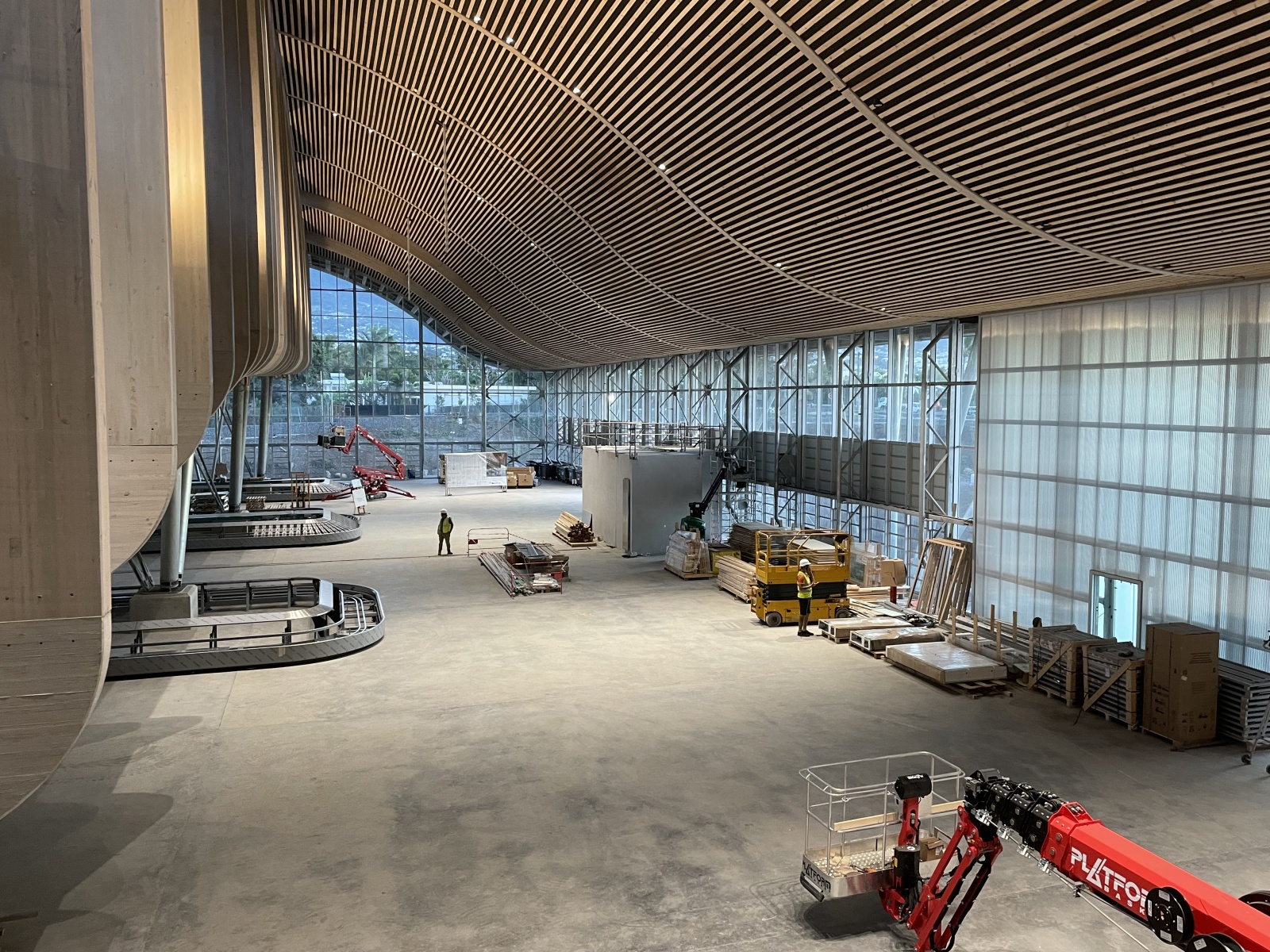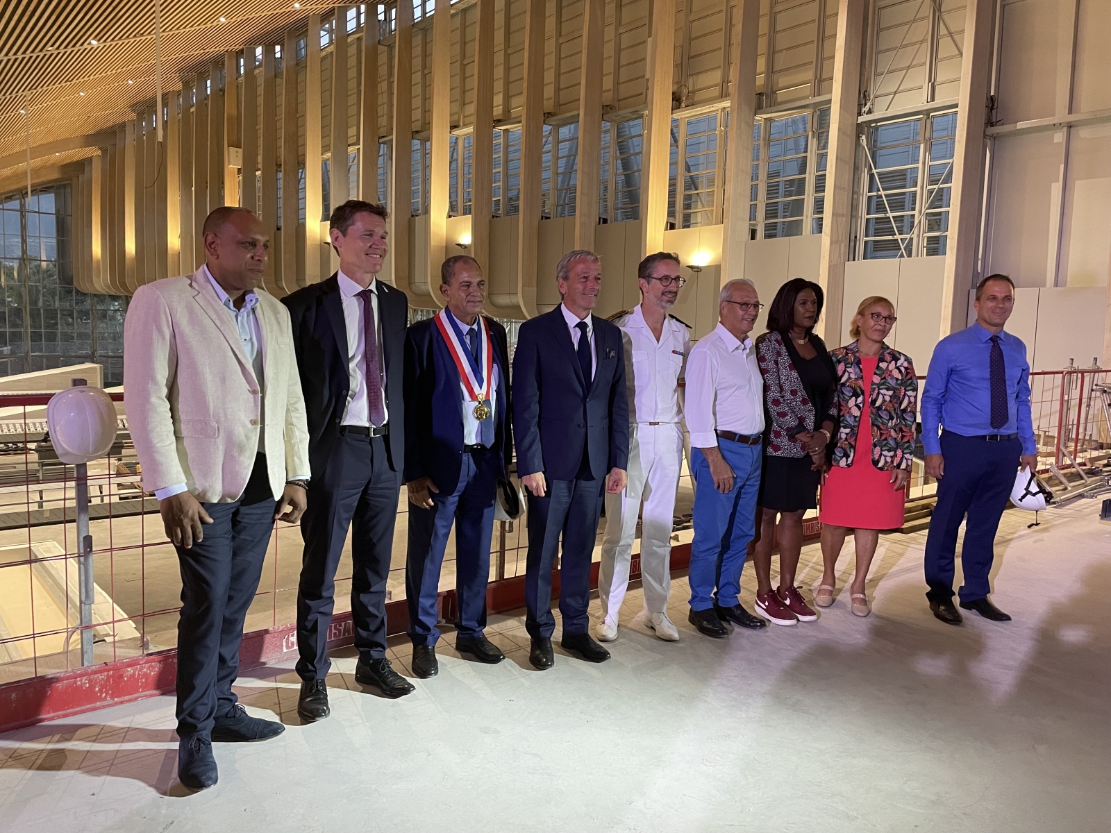 Le ministre a enfilé un casque pour découvrir l'avancée des travaux. L'objectif de cette nouvelle infrastructure, passer à 3 millions de passagers. L'ambition environnementale de la construction a également été exposée. Le bâtiment bioclimatique sera le premier mondialement à fonctionner sans climatisation grâce au vent dans une région soumise aux cyclones.