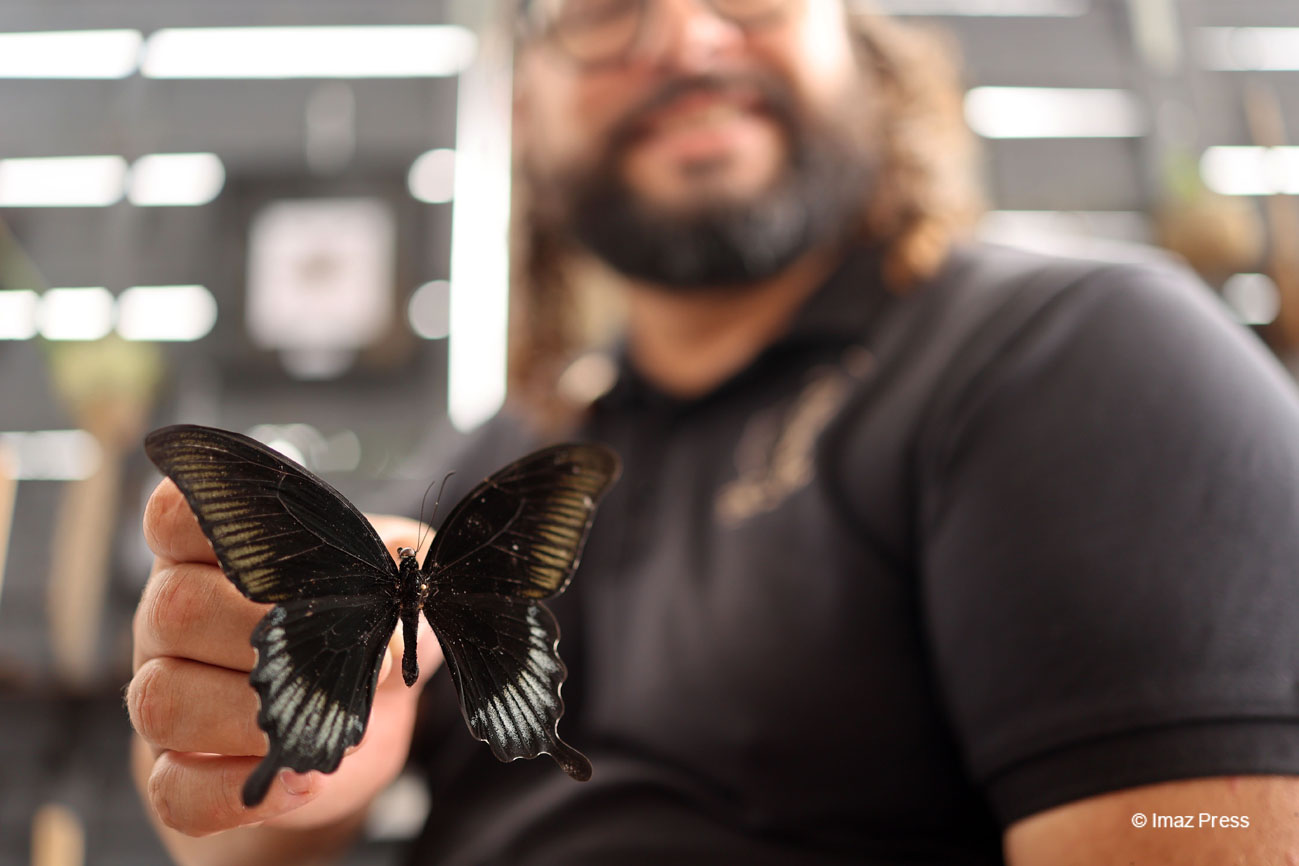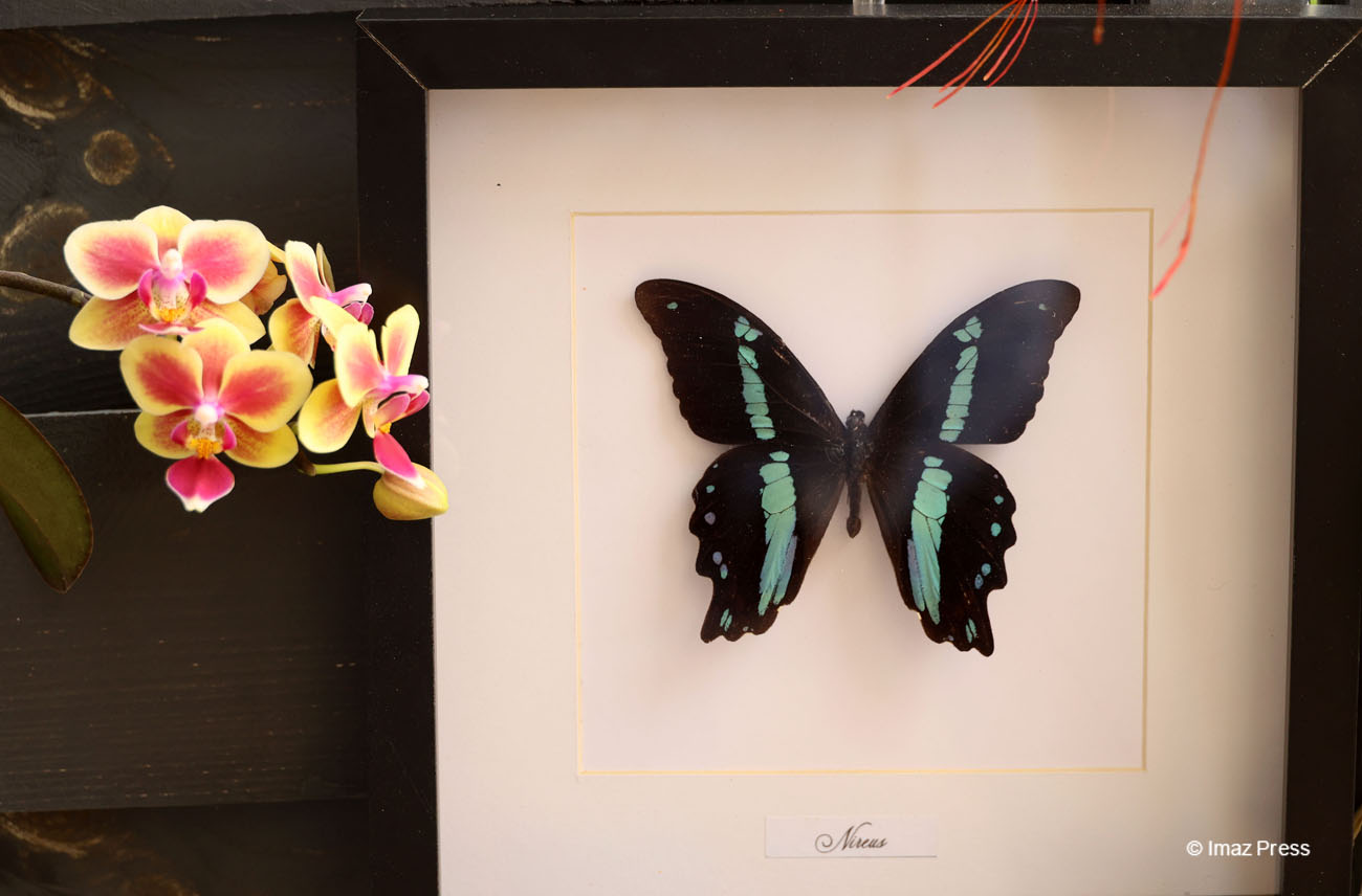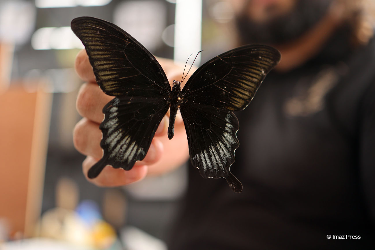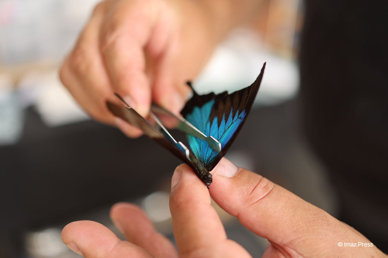 À l’heure où nous le rencontrions, Ludovic Robert travaillait sur un papillon venu tout droit d’Indonésie. « On travaille également avec des fermes de sauvegarde du Pérou et de Thaïlande », ajoute l’artiste. « Après, on peut avoir des espèces que l’on récupère sur un musée aux Pays-Bas, qui est également une école de taxidermie et d’entomologie. »