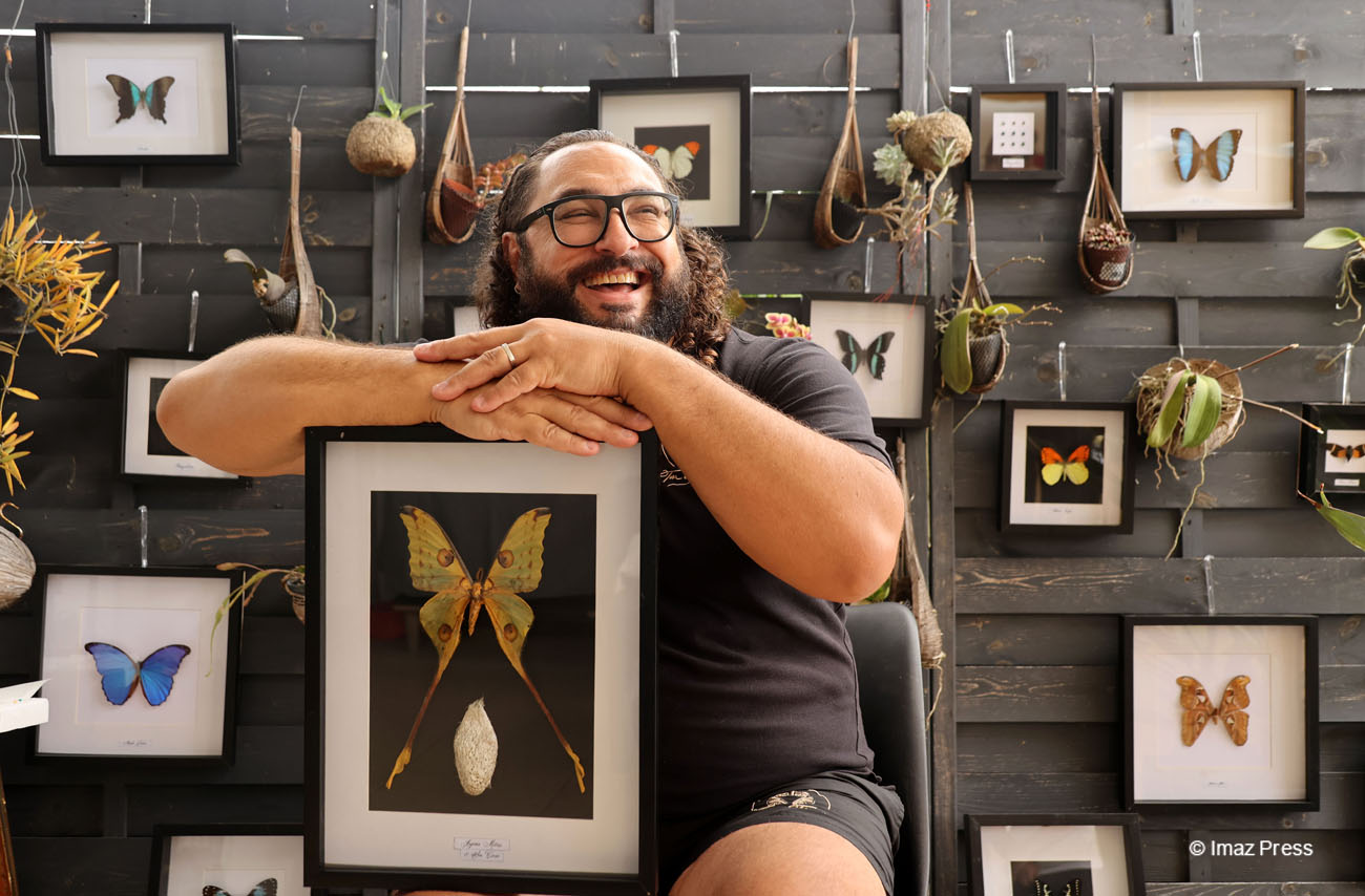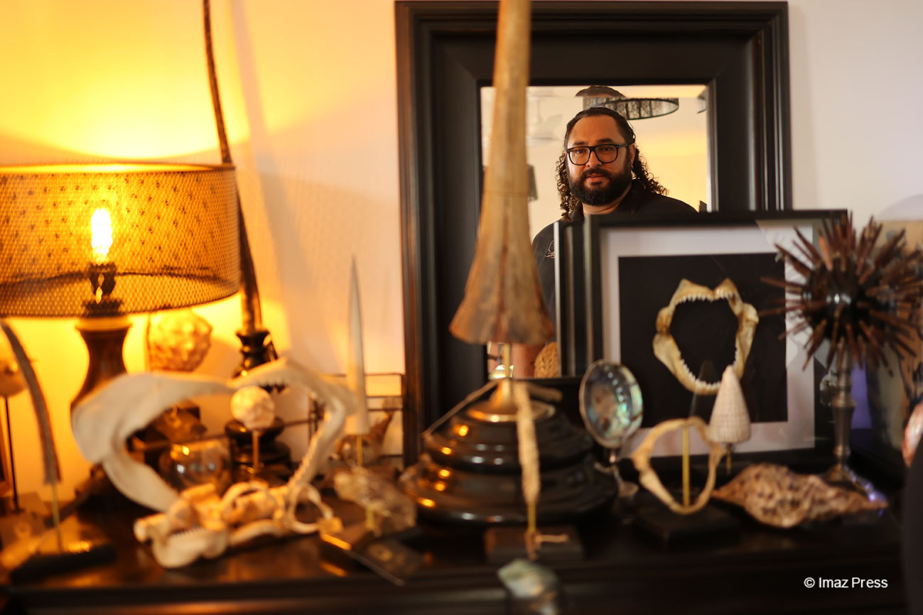 Larves de guêpes, élytre de coléoptères, nacre, insectes… Ludovic Morel est un passionné. Passionné de la nature, passionné d’insolite, passionné de décoration d’intérieur. Au cœur de son appartement de Sainte-Marie, Ludovic nous fait voyager au milieu de ce qu’il aime appeler son « cabinet des curiosités ». Portait d’un artiste, hors du commun. (Photo : rb/www.imazpress.com)