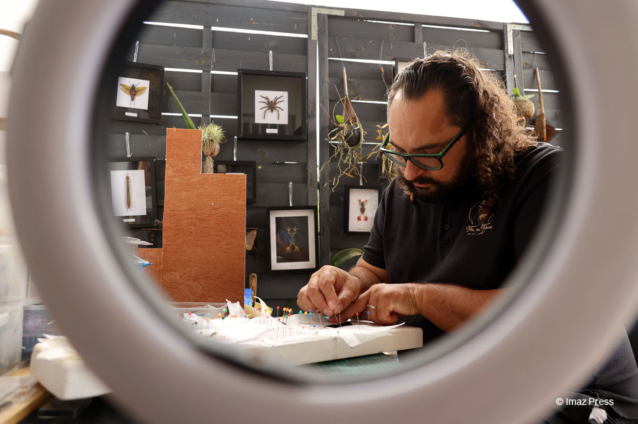 Après avoir reçu une livraison tout à fait spéciale, Ludovic nous explique comment il sublime ces animaux et insectes venus du monde entier.