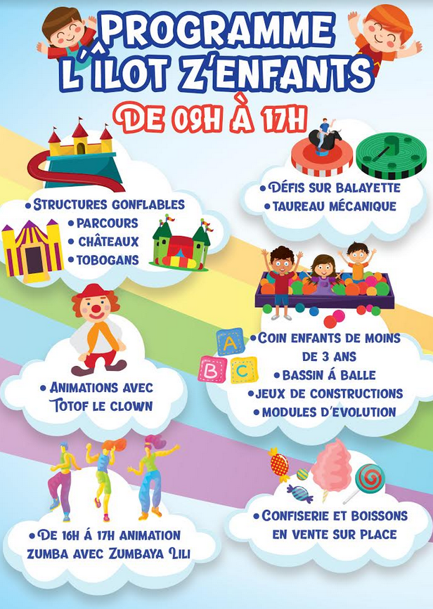 La commune de Petite Île organise l'événement "L'Îlot z'enfants" qui se déroule les samedi 7 et 8 mars 2020 au Gymnase de la ville. De 9 à 17h, plusieurs animations sont prévues à destination des plus petits : structures gonflables, spectacle de clown, bassin à balles, jeu de construction, taureau mécanique... L'entrée coûte 2 euros par marmaille. (Photo d'illustration www.ipreunion.com/[email protected])