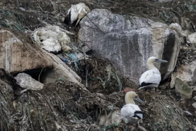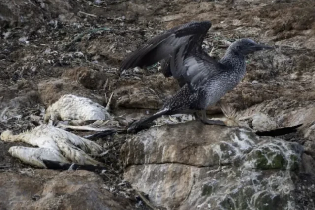 A plusieurs centaines de kilomètres au sud-ouest, sur l'île bretonne du Rouzic, ce sont des Fous de Bassan morts qui jonchent la côte. Par dizaines.