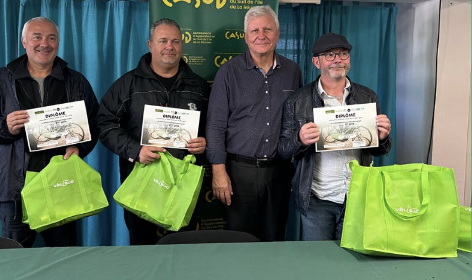 Le Président de la Casud, Jacquet Hoarau, a remis des diplômes aux agents gagnants du challenge interne Mai à vélo ce mercredi 18 juin 2025 (Photo Casud)