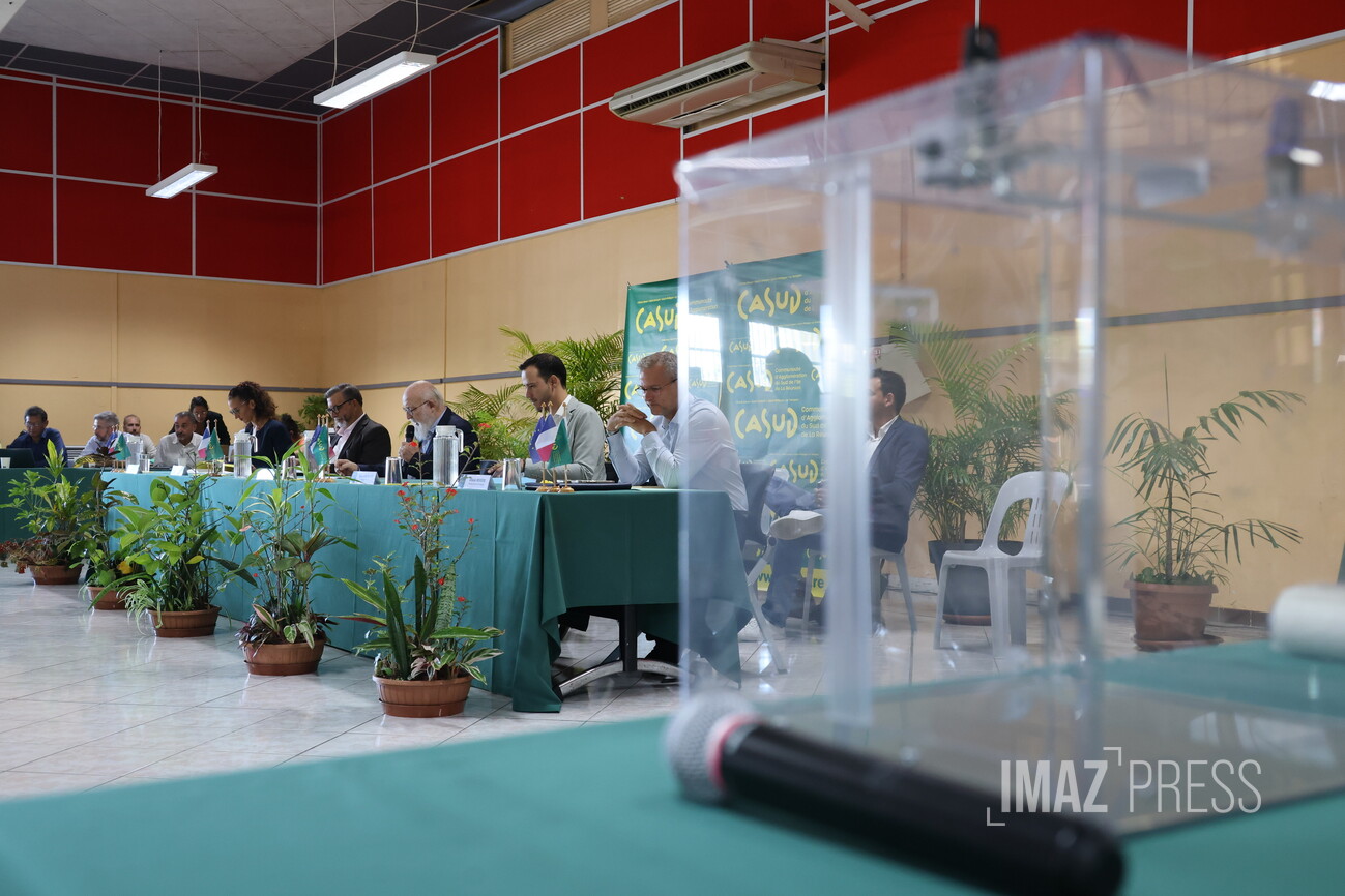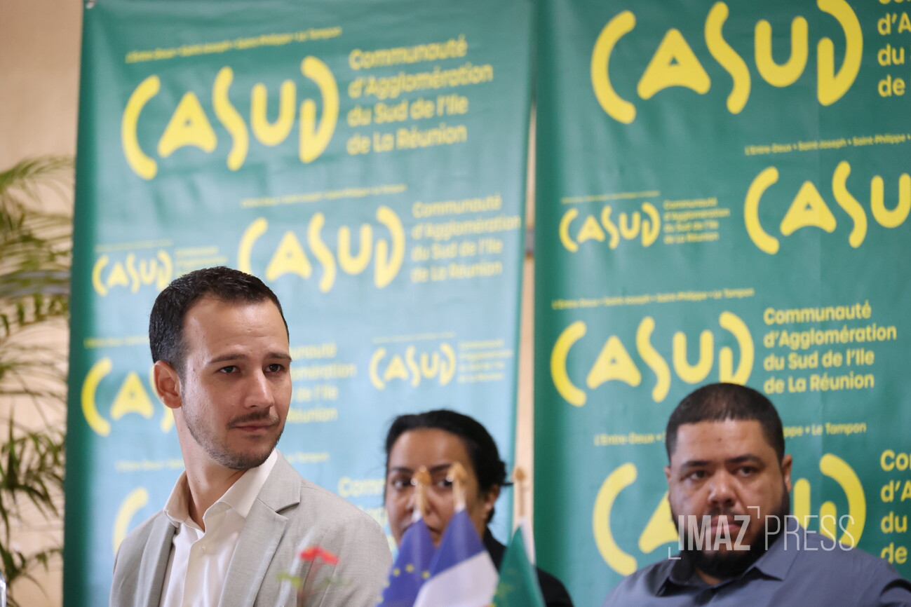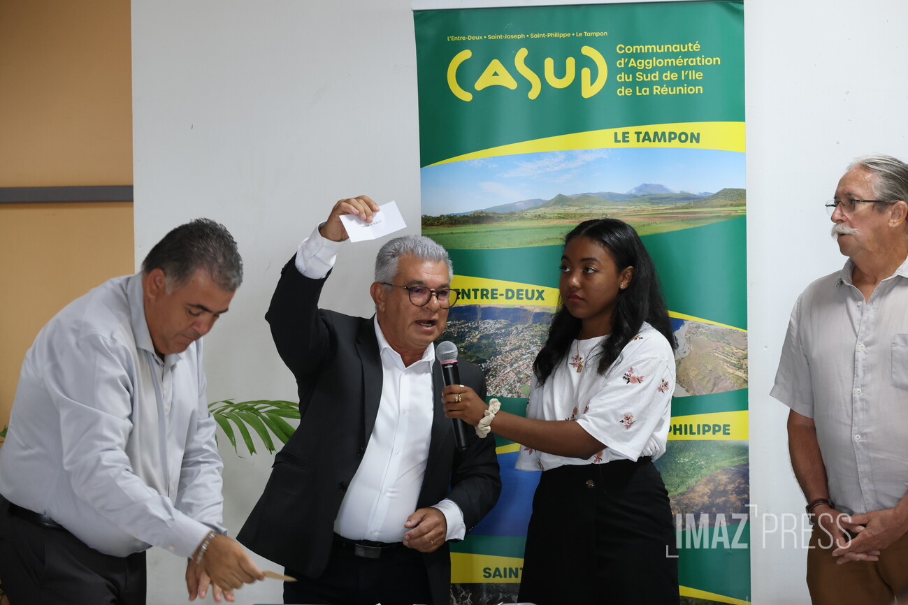 Ce vendredi 10 avril 2026, se tient le premier conseil communautaire de la Casud au 12ème km, issu des élections des 19 et 22 mars 2026. Alexis Chaussalet, maire du Tampon, a été élu président par 43 voix sur 48 donc 5 votes blancs ou nuls. Il confirme la présidence alternée avec son premier vice-président, Patrick Lebreton, qui à mi-mandat, prendra la présidence. La Casud comprend les communes du : Tampon, Saint-Joseph, Saint-Philippe et L’Entre-Deux. Nous sommes en direct (Photos : Richard Bouhet/www.imazpress.com)