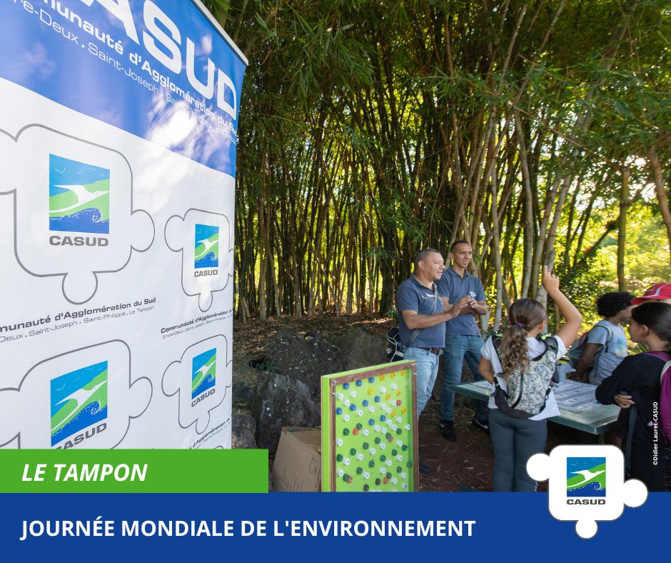 La Casud, en partenariat avec la mairie du Tampon et la SPL Edden, a animé des ateliers pour les élèves de l'école Antoine Lucas (Le Tampon) ce lundi 5 juin dernier au jardin Marc Rivière dans le cadre de la Journée mondiale de l’environnement. À travers des animations ludiques comme le jeu Faluda 974 (jeu de questions-réponses créé par les animateurs de l'intercommunalité), la Casud a sensibilisé et informé une centaine d'enfants sur des thématiques tels que la prévention des déchets, le compostage et les diverses compétences de l'intercommunalité (Photo Casud)