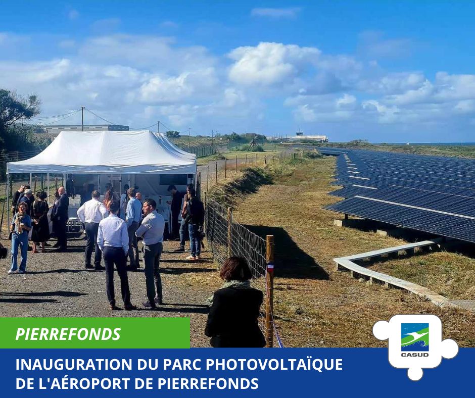 Vendredi 30 juin 2023, a eu à l’aéroport de Pierrefonds l’inauguration d’une centrale photovoltaïque. C’est une première à l’échelle nationale. Ce parc photovoltaïque, installé sur dix hectares de délaissés autour des pistes, produira annuellement en énergie électrique l'équivalent de la consommation de 8 400 foyers. Cette prouesse traduit la volonté du syndicat mixte de Pierrefonds et de son Président André Thien Ah Koon a innové et à se placer comme pionnier dans le domaine de l'énergie renouvelable (Photo)