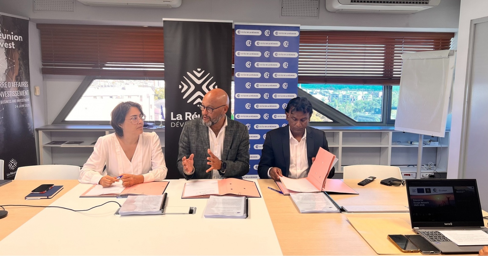 Le 14 août 2025, la Chambre de commerce et d’industrie de La Réunion a officialisé, aux côtés de La Réunion Développement et de La Réunion Innovation, son entrée dans le réseau Enterprise Europe Network (EEN). Ce dispositif vise à accompagner les entreprises locales dans leur développement international, leur accès aux financements européens et la valorisation de leurs projets d’innovation. Il doit également faciliter les partenariats commerciaux et technologiques, ainsi que l’intégration des PME réunionnaises aux marchés européens. Nous publions le post de la CCIR ci-dessous. (Photos : CCIR).
