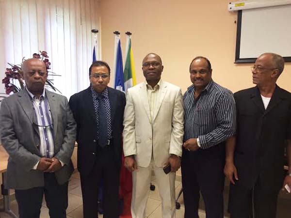 Ce samedi 5 avril 2014, le président de la chambre de commerce et d'industrie de La Réunion, Ibrahim Patel, a reçu Abdou Nassur Madi, ministre de la Production, de l'environnement, de l'énergie, de l'industrie et de l'artisanat de l'union des Comores. Ce dernier était accompagné de Mohamed Halifa, secrétaire d'État délégué à l'agriculture et à la pêche, et de Mohamed Soilihi, président de la fédération nationale des agriculteurs. Une rencontre riche d'échanges en vue d'une meilleure coopération entre La Réunion et les Comores, qui accueilleront notamment le 10ème Forum économique des îles en octobre prochain.