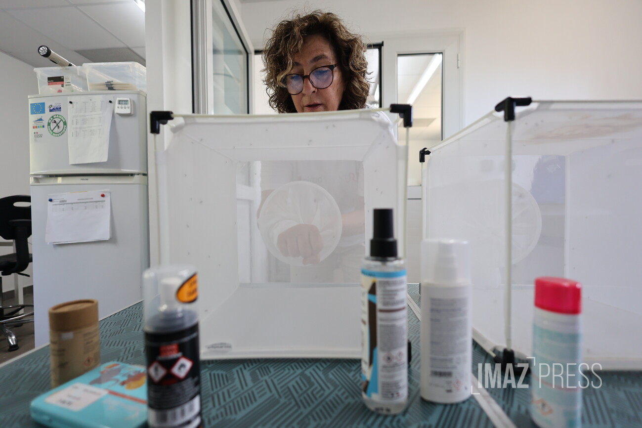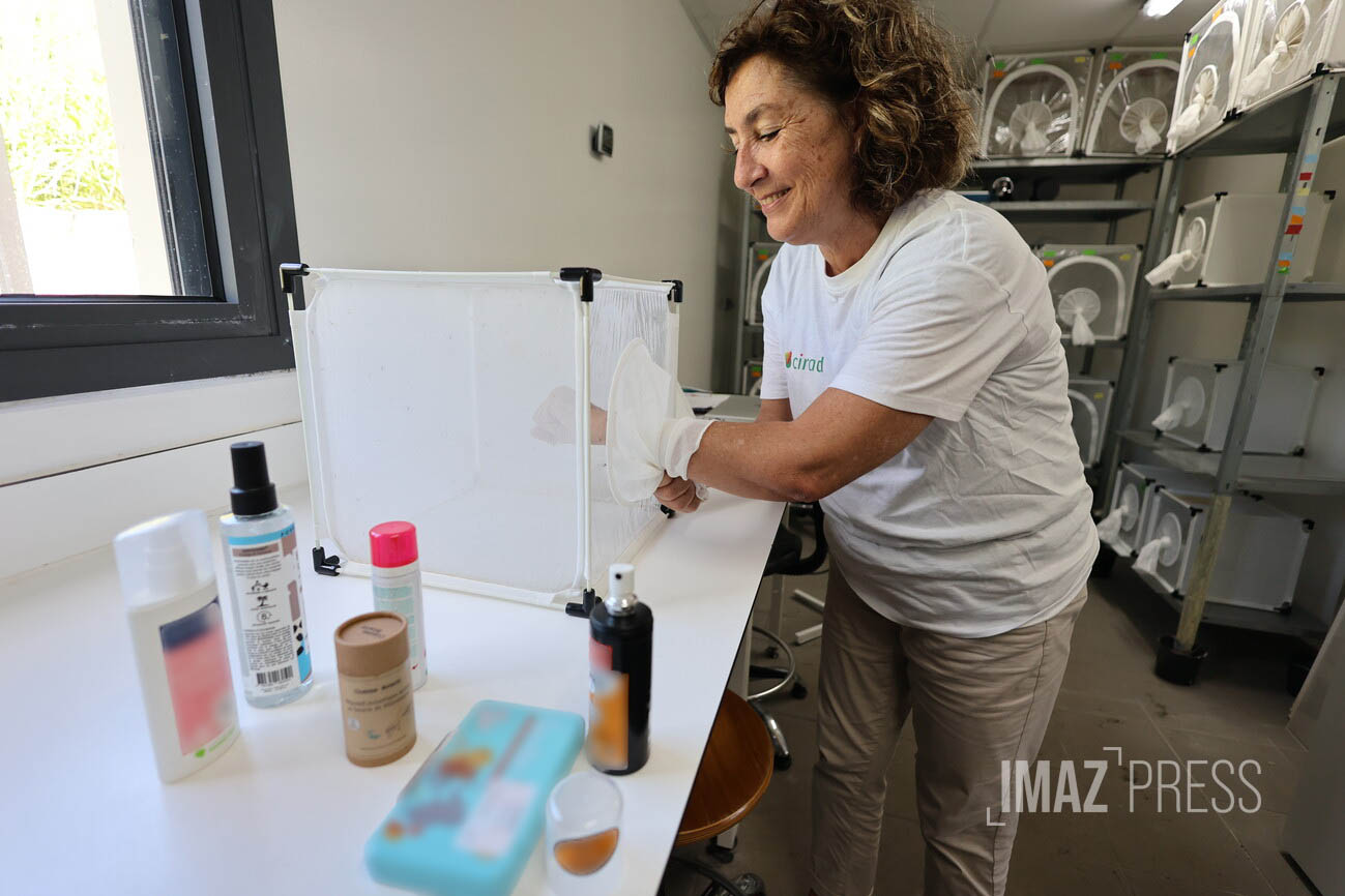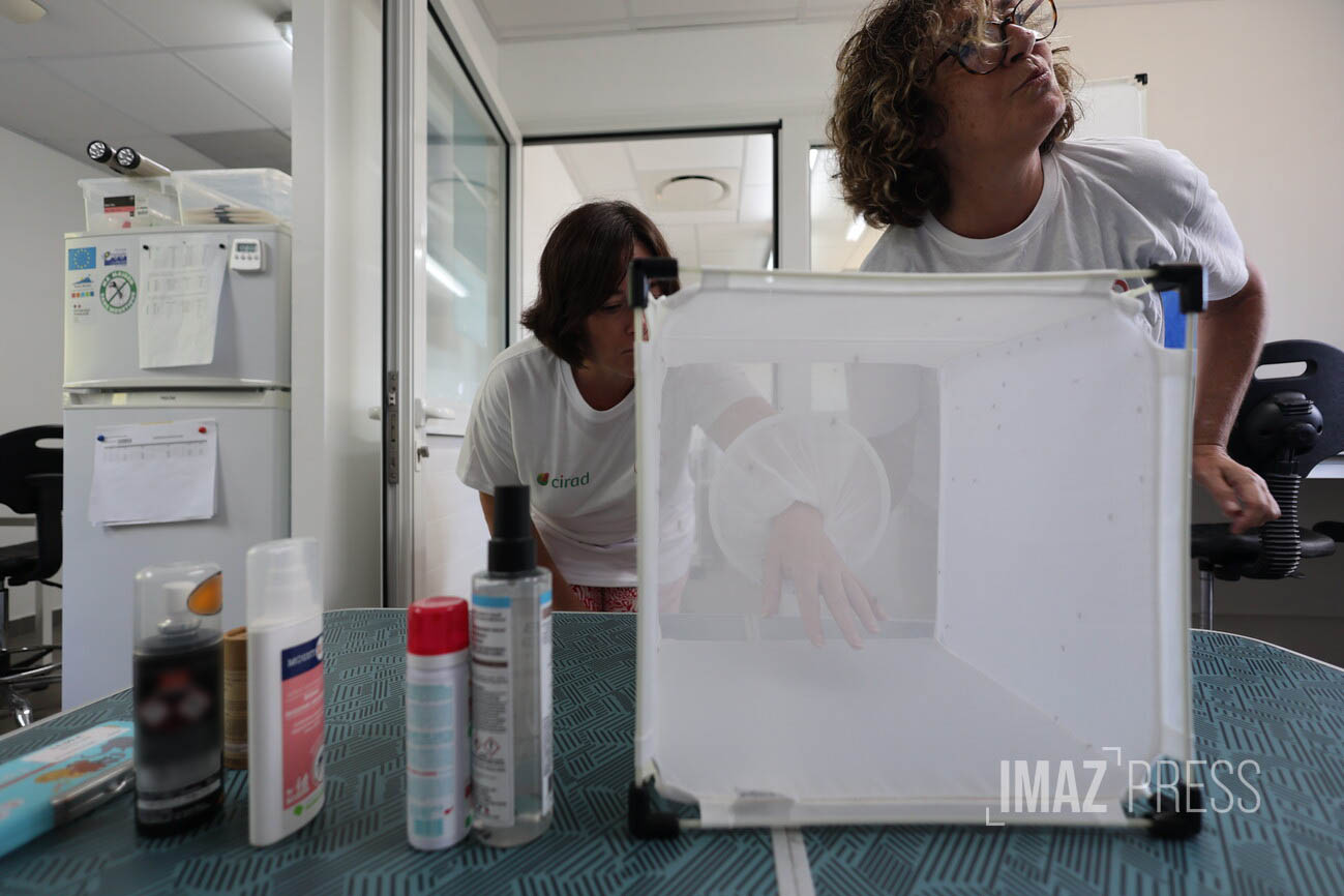 Au sein de l'insectarium de l'Institut de recherches situé au Cyroi (Cyclotron Réunion Océan Indien) , ces tests sont une première, organisés spécialement pour Imaz Press. De base, les tests de ces produits se font dans l'Hexagone.