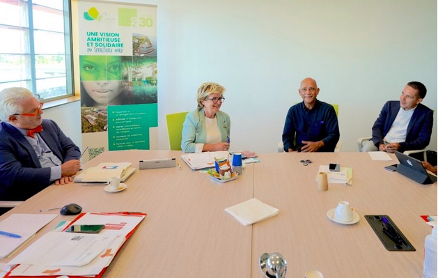 Le premier vice-président de La Cinor Jacques Lowinsky a reçu le mardi 23 août 2022 une délégation du Cerema (Centre d'Études et d'expertise sur les Risques, l'environnement, la mobilité et l'aménagement), présidée par Mme Marie-Claude Jarrot, maire de Montceau-les-Mines. (photo : Cinor)