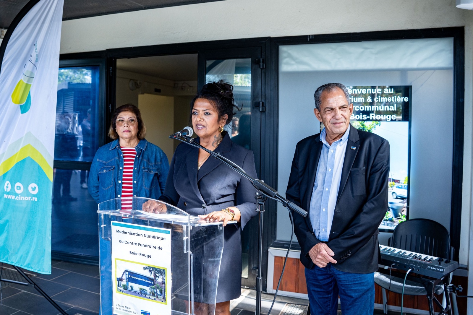 La Cinor a inauguré, ce jeudi 11 septembre 2025, la modernisation du centre funéraire de Bois-Rouge, une première en Outre-mer. Le site propose désormais des services innovants : cérémonies accessibles à distance, diffusion de photos et musiques personnalisées, retransmission extérieure en cas de forte affluence, ainsi qu’un futur site internet dédié pour la gestion des concessions et démarches en ligne. Nous publions le post de la Cinor ci-dessous. (Photos : La Cinor).