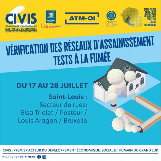 Depuis lundi 17 juillet 2023, la Civis optimise le réseau d’assainissement collectif de la commune de Saint-Louis. L’objectif : détecter les raccordements d'eaux parasites grâce aux tests à la fumée réalisés par le bureau d'étude ATM-OI. Sont concernés par les tests les rues : Elsa Triolet, Louis Aragon, Pasteur et Bruxelles. Ci-dessous nous publions le communiqué (Photo: rb/www.imazpress.com)