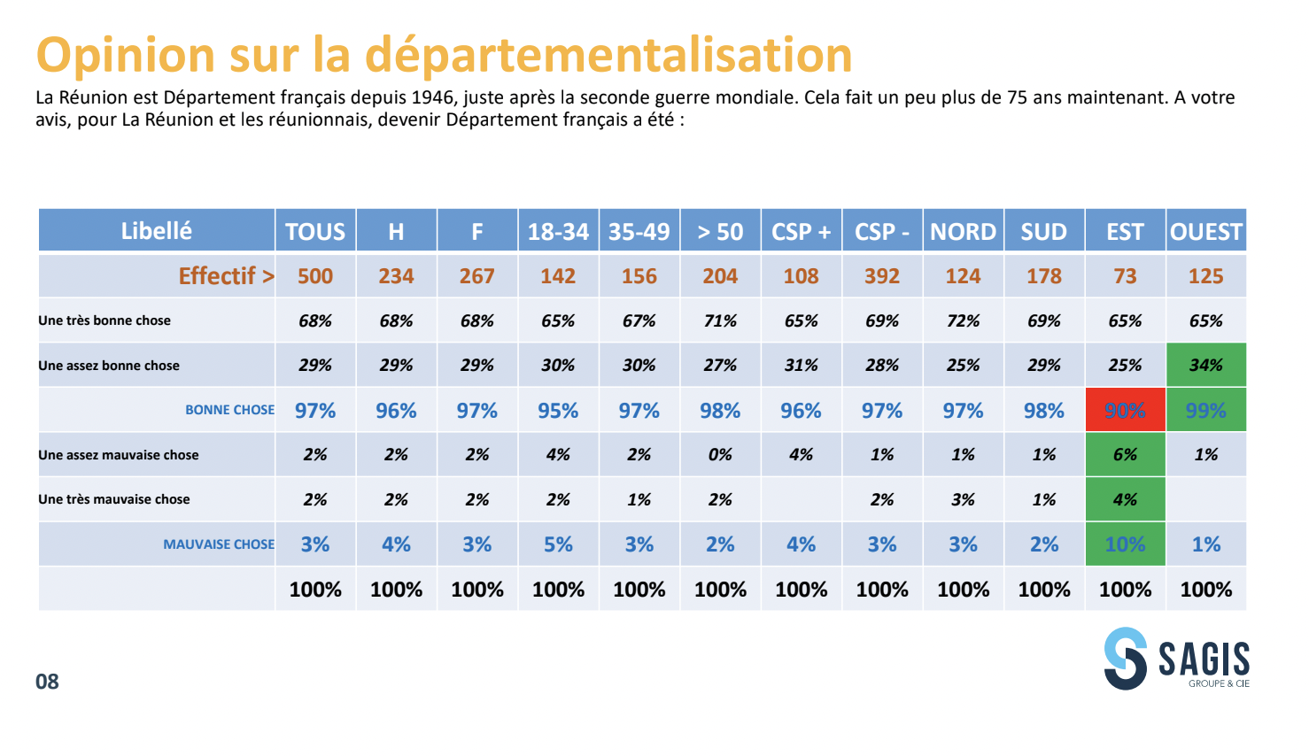 La Réunion est Département français depuis 1946, juste après la seconde guerre mondiale. Cela fait un peu plus de 75 ans maintenant. A votreavis, pour La Réunion et les réunionnais, devenir Département français a été : Opinion sur la départementalisation