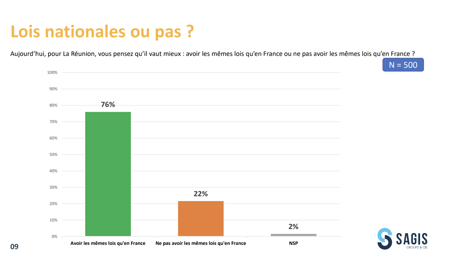 Aujourd’hui, pour La Réunion, vous pensez qu’il vaut mieux : avoir les mêmes lois qu’en France ou ne pas avoir les mêmes lois qu’en France ?