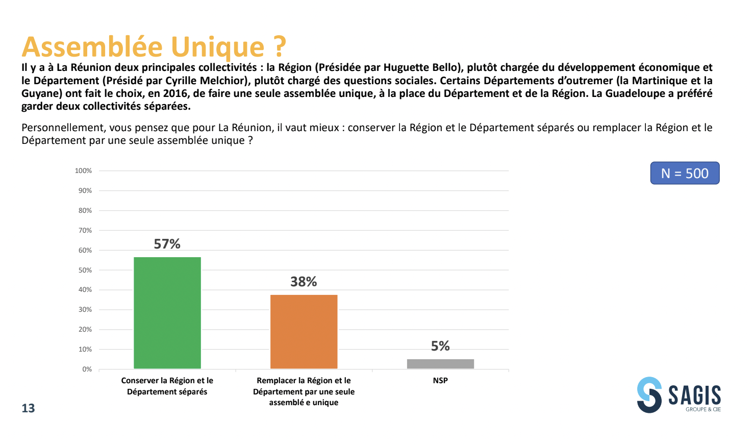 Personnellement, vous pensez que pour La Réunion, il vaut mieux : conserver la Région et le Département séparés ou remplacer la Région et leDépartement par une seule assemblée unique ? Assemblée Unique ?