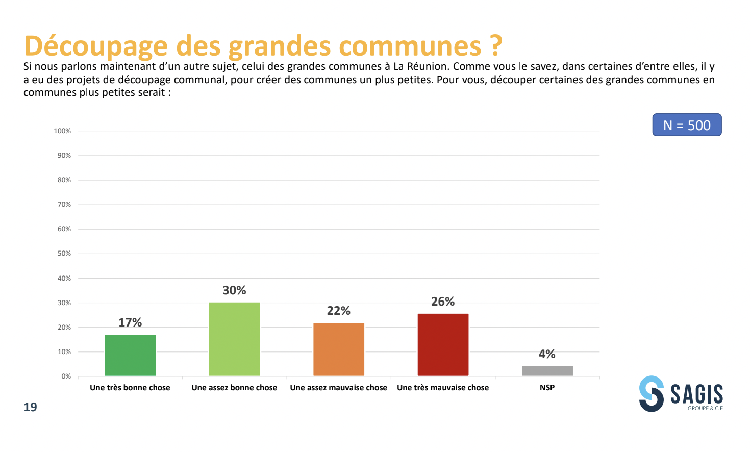 Si nous parlons maintenant d’un autre sujet, celui des grandes communes à La Réunion. Comme vous le savez, dans certaines d’entre elles, il ya eu des projets de découpage communal, pour créer des communes un plus petites. Pour vous, découper certaines des grandes communes encommunes plus petites serait : Découpage des grandes communes ?