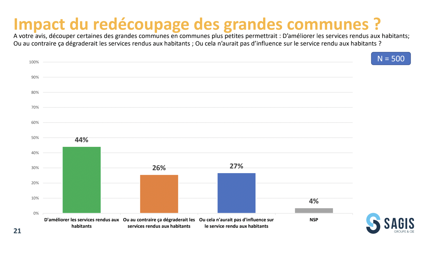 A votre avis, découper certaines des grandes communes en communes plus petites permettrait : D’améliorer les services rendus aux habitants;Ou au contraire ça dégraderait les services rendus aux habitants ; Ou cela n’aurait pas d’influence sur le service rendu aux habitants ?