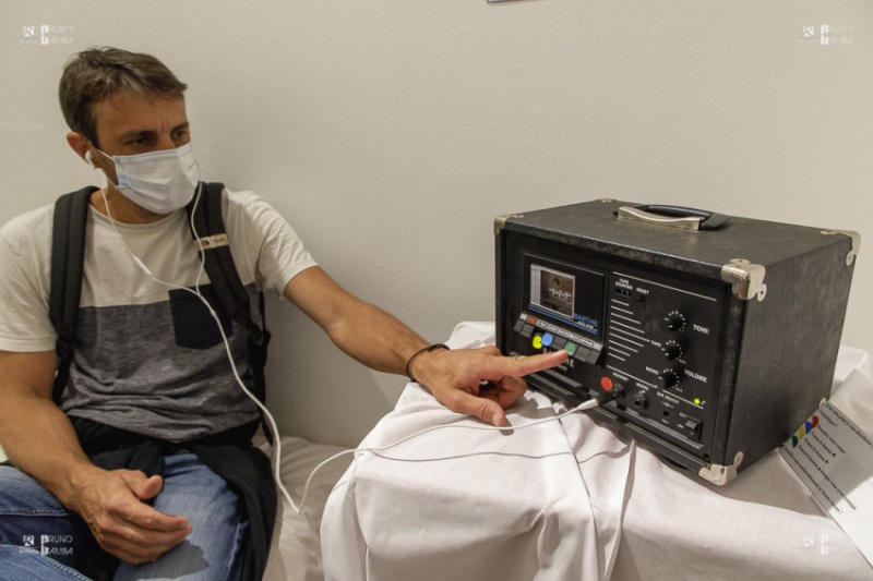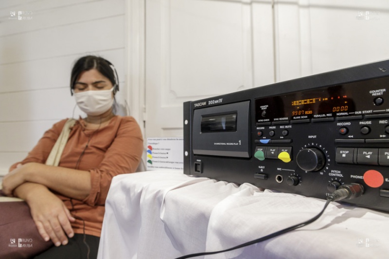 Les deux premières phases de l’exposition sont jalonnées de postes d’écoutes radio-cassette dans lesquels, grâce à un casque individuel, fourni par ses équipes, les visiteurs peuvent écouter des extraits des productions d’écrits d’Eric Lebeau accompagnés de créations musicales originales. Le meilleur pour la fin puisque l’artiste performe en live avec ses instruments dans le parcours final de ce voyage intérieur au cœur de l’univers d’Eric Lebeau.