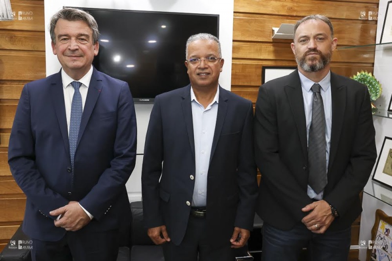 Ce lundi 9 mai 2022, Cyrille Melchior a rencontré Olivier Salleron de la Fédération française du Bâtiment (FFB), président de la Fédération nationale des travaux publics (FNTP) pour une séance de travail autour des chantiers à forts enjeux pour le territoire. Il était accompagné d'Anthony Lebon, président de la Fédération réunionnaise du bâtiment et des travaux publics (FRBTP). Nous publions ci-dessous le communiqué du Département de La Réunion. (Photos : Bruno Bamba - Conseil départemental)