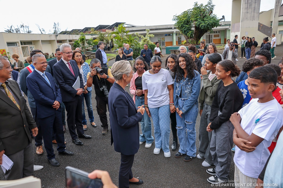 À l’occasion de la rentrée 2025-2026, la ministre de l’Éducation nationale, Elisabeth Borne, a visité ce lundi 19 août 2025, le collège Hubert Delisle de Saint-Benoît, fortement touché par le cyclone Garance. Accueillie par le président du Département, Cyrille Melchior, elle a échangé avec les élèves, enseignants et personnels avant de se rendre au Palais de la Source pour une rencontre avec le recteur Rostane Mehdi et les jeunes du conseil départemental des jeunes. Les discussions ont porté sur la protection de l’enfance, l’accompagnement des élèves en situation de handicap, les dispositifs éducatifs et l’avenir des collèges réunionnais. Nous pubions le post du département ci-dessous. (Photos : Département).