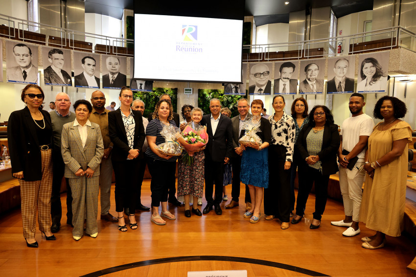 Le président du Conseil départemental, Cyrille Melchior, a salué mercredi 20 août le parcours de Nathalie Faucher, présidente de l’association Autisme Réunion et lauréate du prix Thérèse Baillif. Lors d’un hommage rendu en commission permanente, en présence de sa mère et des élus, il a souligné son engagement de longue date pour l’inclusion des personnes en situation de handicap et le soutien aux familles. Nous publions le post du département ci-dessous. (Photo : Département).